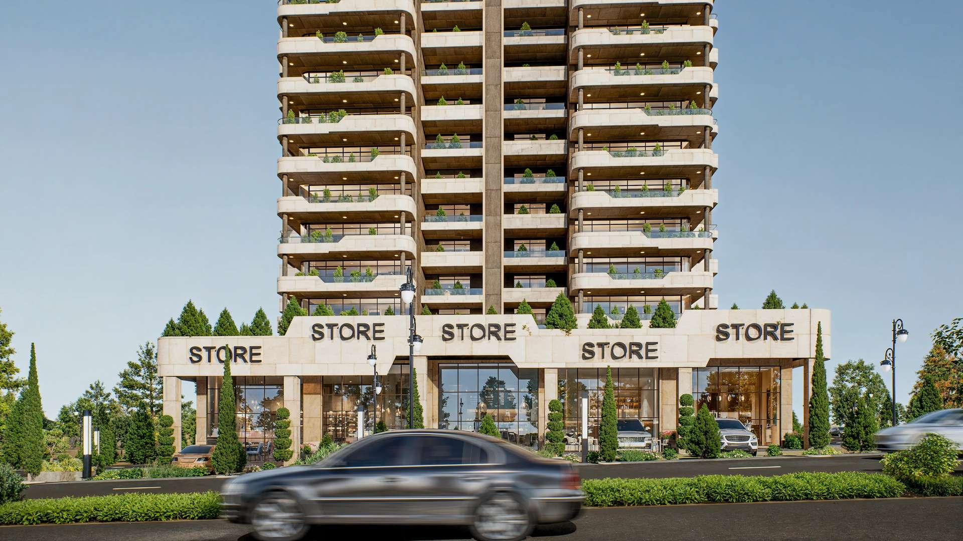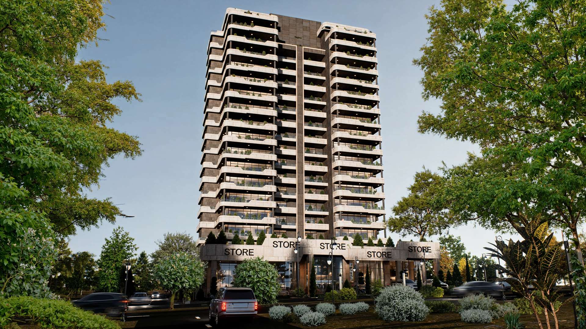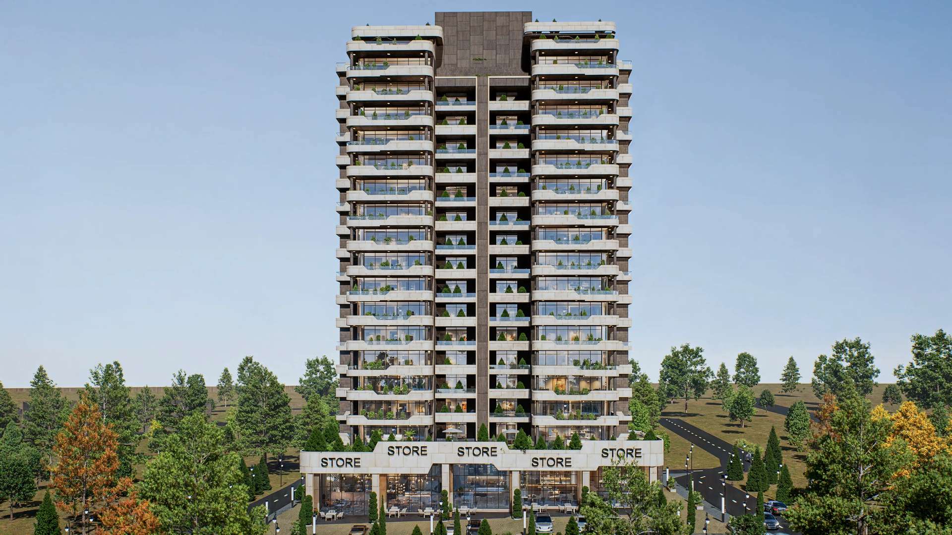 Beytepe’nin dinamik dokusuna yenilikçi bir soluk getiren bu karma kullanım (mixed-use) projesi, konut ve ticaret fonksiyonlarını zarif bir dikey kurguda buluşturuyor. Tasarımın ana karakterini, kule kütlesini yatayda saran ve yapıya akıcı, heykelsi bir silüet kazandıran yumuşak kavisli balkon silmeleri oluşturmaktadır. Zemin kotunda sokağa ve yaya sirkülasyonuna doğrudan entegre olan ticari birimler (mağazalar), kentsel yaşamı canlandıran güçlü bir baza tanımlar. Üst katlardaki yaşam alanları ise cepheye ustaca dahil edilen yeşil doku, geniş teraslar ve şeffaf yüzeylerle doğayı dikeyde de sürdürür. Estetik ve işlevselliği harmanlayan bu kule, Beytepe için modern, prestijli ve yaşayan bir simge yapı (landmark) vadetmektedir.
