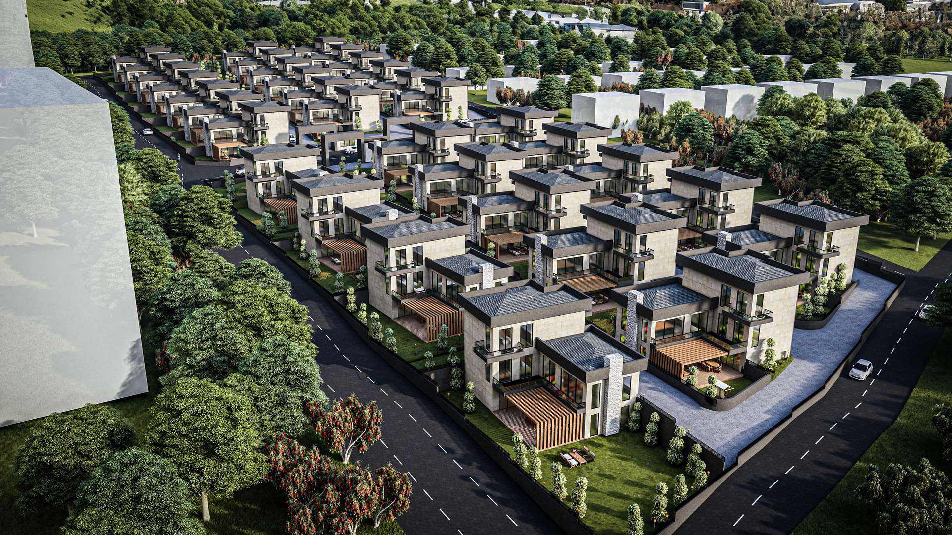 Dodurga Villa Sitesi, müstakil yaşam konforunu geniş ölçekli ve planlı bir yerleşim kurgusuyla bir araya getiriyor. Arazinin doğal yapısıyla uyumlu bir şekilde konumlanan villalar, tekrar eden rasyonel kütle hareketleriyle alan genelinde dinamik, çağdaş ve bütüncül bir mimari dil oluşturmaktadır. Tasarımın ana karakterini; açık gri dokulu cephe yüzeyleri, koyu antrasit belirgin çatı hatları ve yapıya sıcaklık katan dikey ahşap güneş kırıcıların yarattığı estetik denge tanımlar. Her bir villanın kendine ait özel bahçe ve yarı açık otopark alanları kullanıcı mahremiyetini güvence altına alırken; geniş cam yüzeyler ferah, prestijli ve doğayla iç içe bir komşuluk kültürü vadetmektedir.