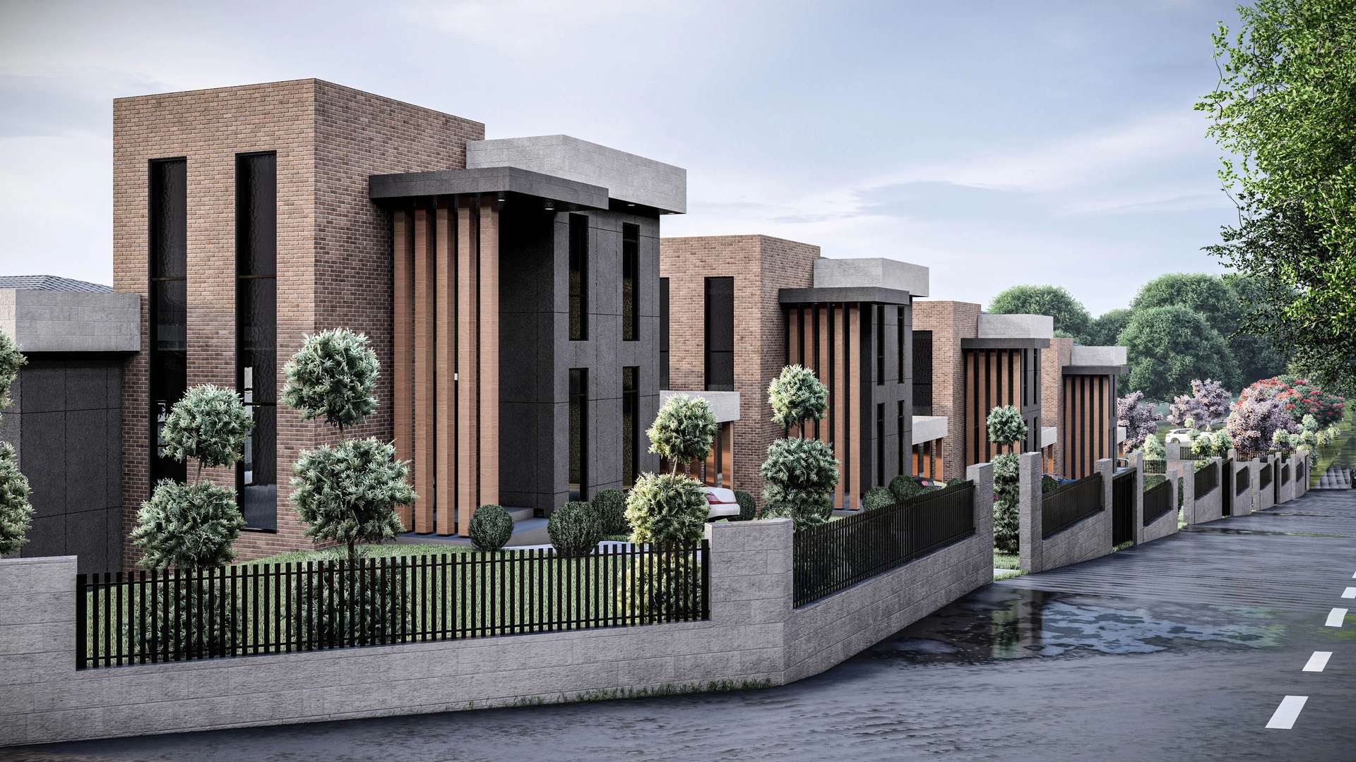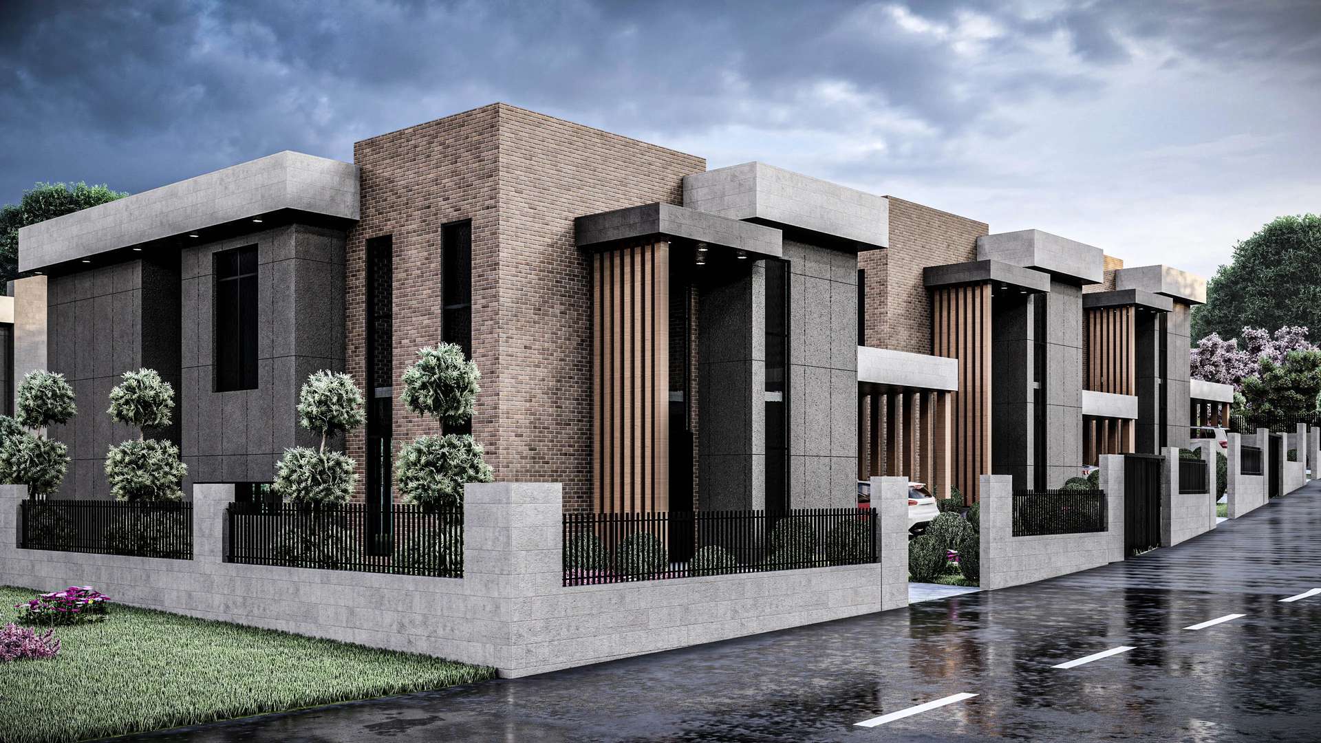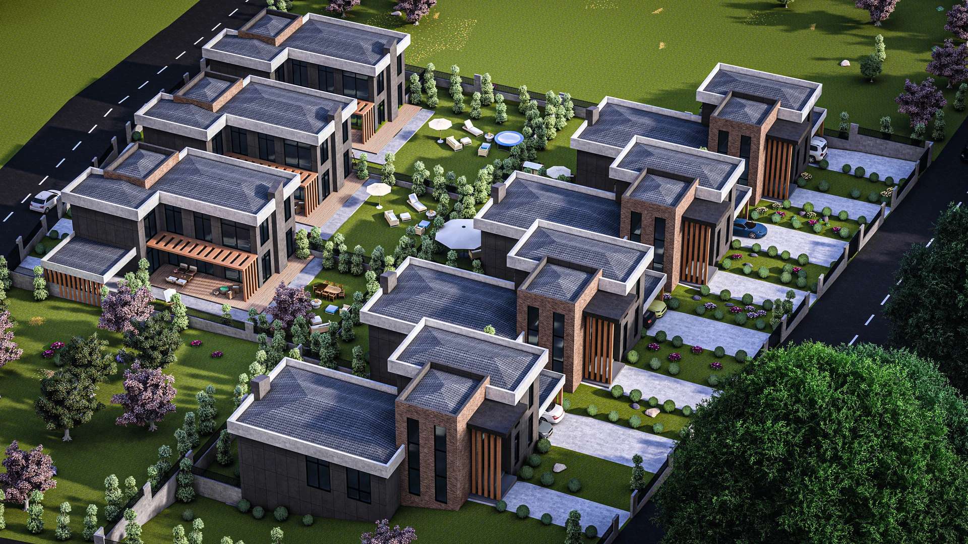 İncek’te konumlanan Venti Villaları 1. Etap projesi, modern kütle kurgusu ve nitelikli malzeme seçimleriyle müstakil yaşama prestijli bir yorum getiriyor. Rasyonel ve kübik formların hakim olduğu tasarımda, cepheleri saran antrasit yüzeyler; sıcak tuğla dokusu ve dikey ahşap güneş kırıcılarla dengelenerek yapıya estetik bir ritim kazandırmaktadır. Geniş cam yüzeyler ve galeri boşluklu yüksek giriş kurgusu, iç mekanların gün ışığıyla maksimum düzeyde bütünleşmesini sağlarken; ana kütleye entegre edilmiş yarı açık otoparklar ve korunaklı özel bahçeler fonksiyonelliği artırır. Modern hatları ve peyzajla iç içe geçen yerleşim planıyla proje, kullanıcılarına konforlu ve izole bir yaşam alanı sunmaktadır.
