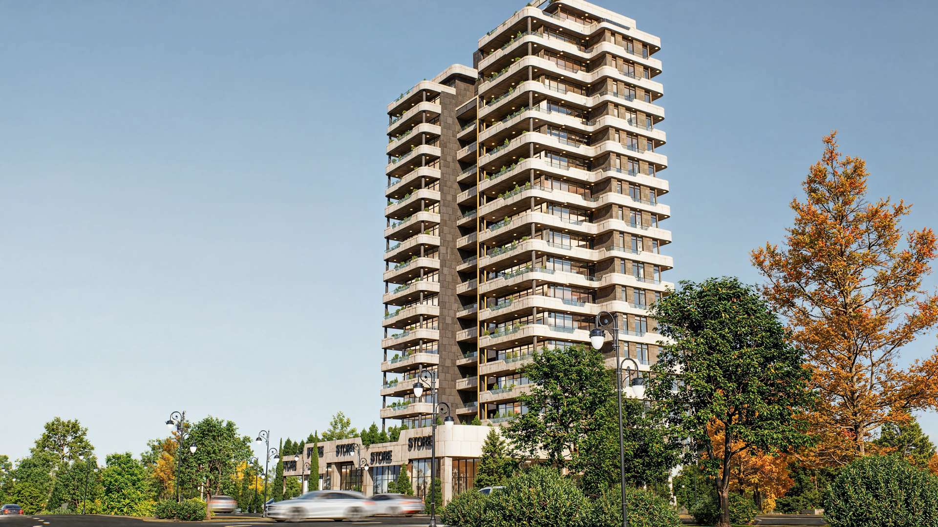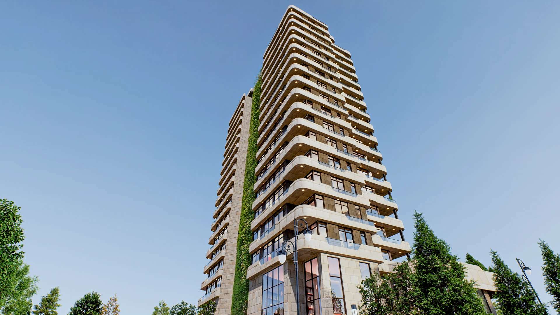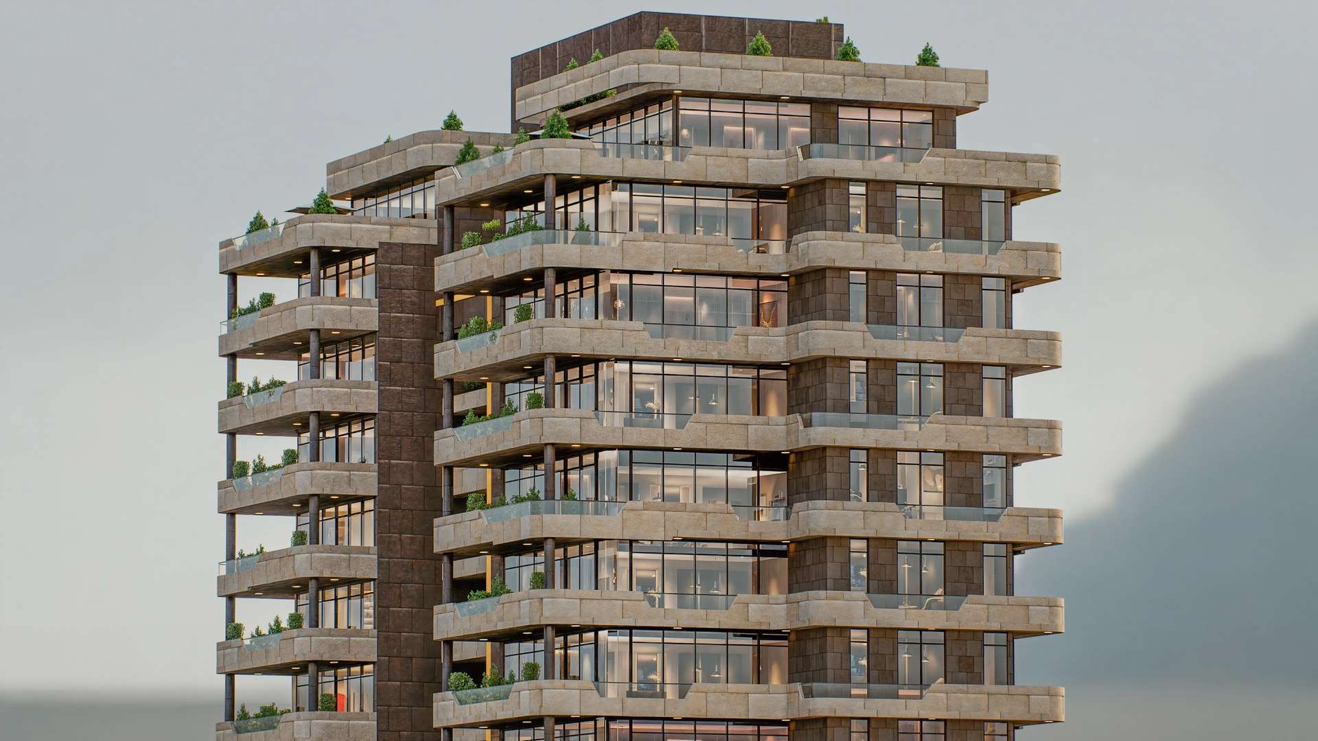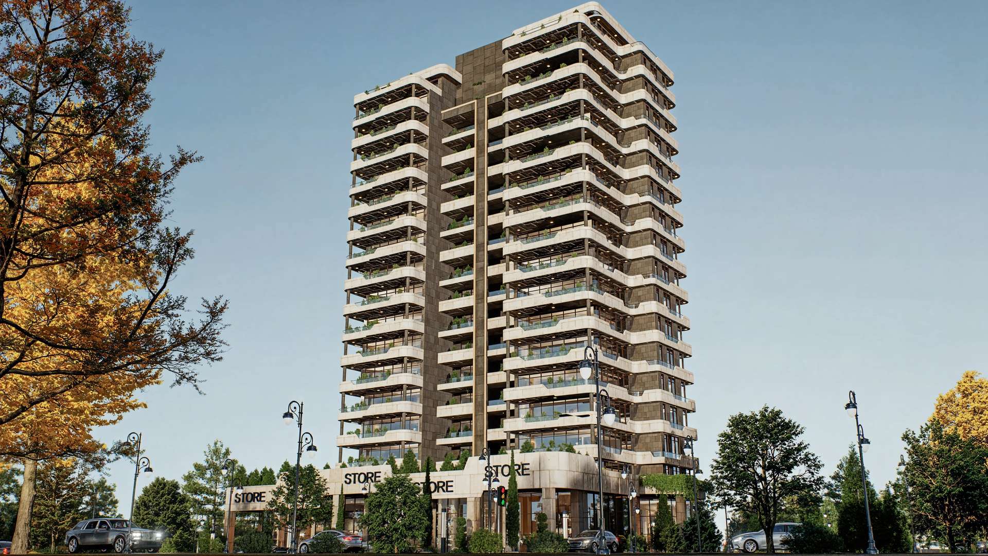 Beytepe’nin dinamik dokusuna yenilikçi bir soluk getiren bu karma kullanım (mixed-use) projesi, konut ve ticaret fonksiyonlarını zarif bir dikey kurguda buluşturuyor. Tasarımın ana karakterini, kule kütlesini yatayda saran ve yapıya akıcı, heykelsi bir silüet kazandıran yumuşak kavisli balkon silmeleri oluşturmaktadır. Zemin kotunda sokağa ve yaya sirkülasyonuna doğrudan entegre olan ticari birimler (mağazalar), kentsel yaşamı canlandıran güçlü bir baza tanımlar. Üst katlardaki yaşam alanları ise cepheye ustaca dahil edilen yeşil doku, geniş teraslar ve şeffaf yüzeylerle doğayı dikeyde de sürdürür. Estetik ve işlevselliği harmanlayan bu kule, Beytepe için modern, prestijli ve yaşayan bir simge yapı (landmark) vadetmektedir.