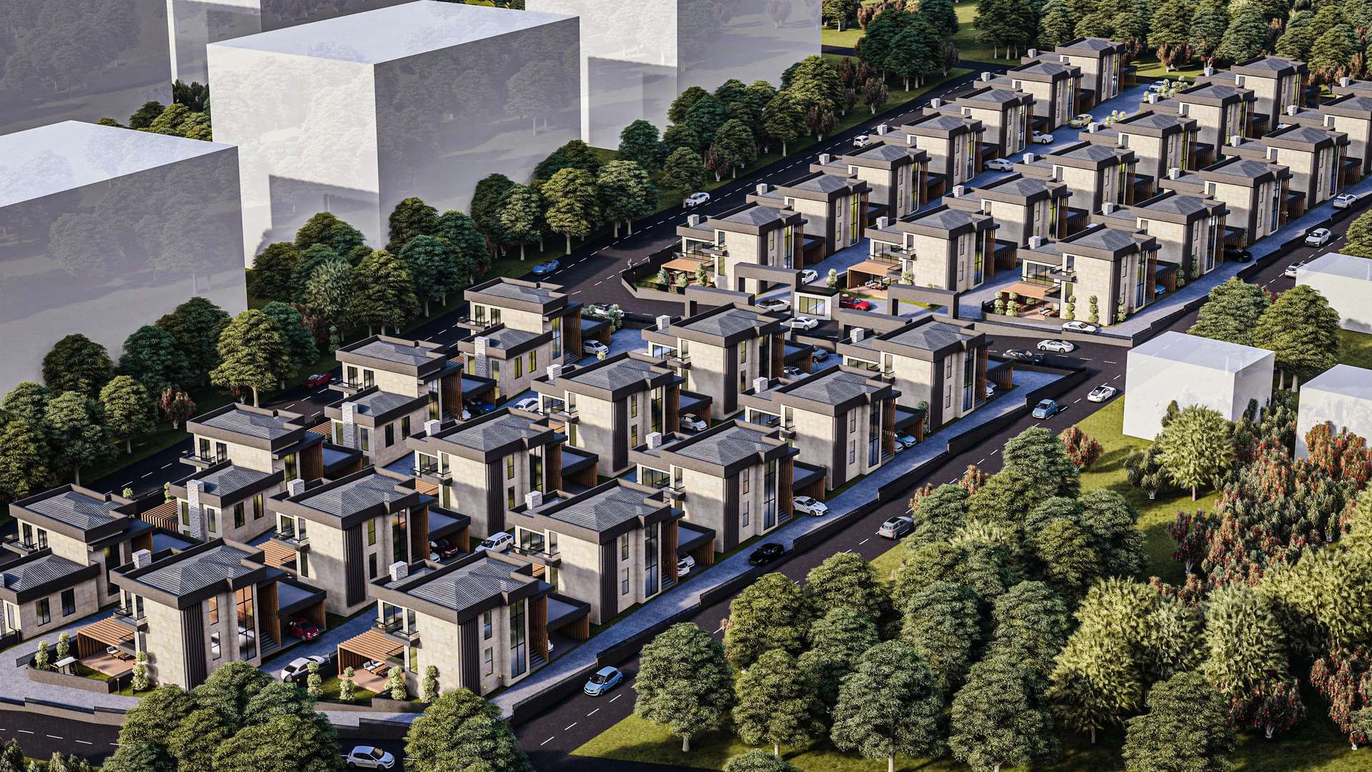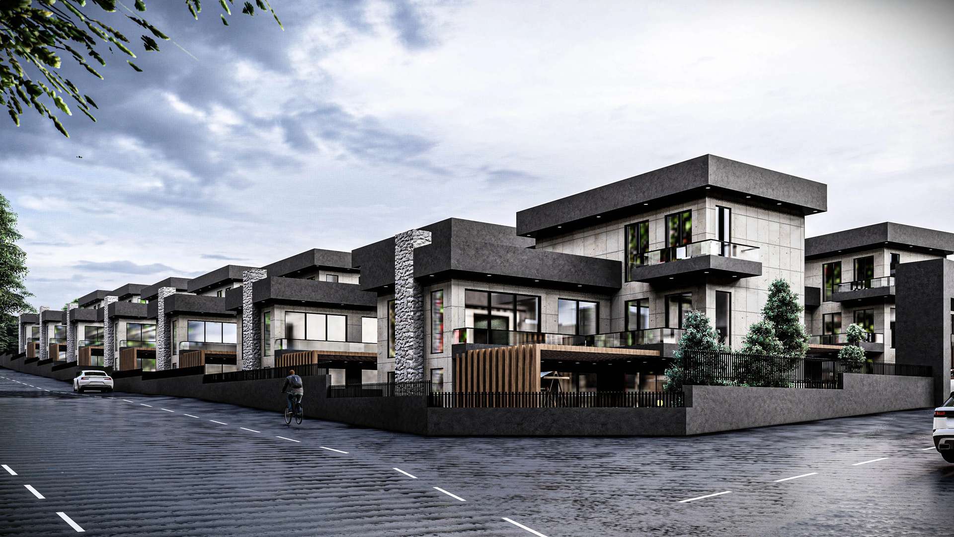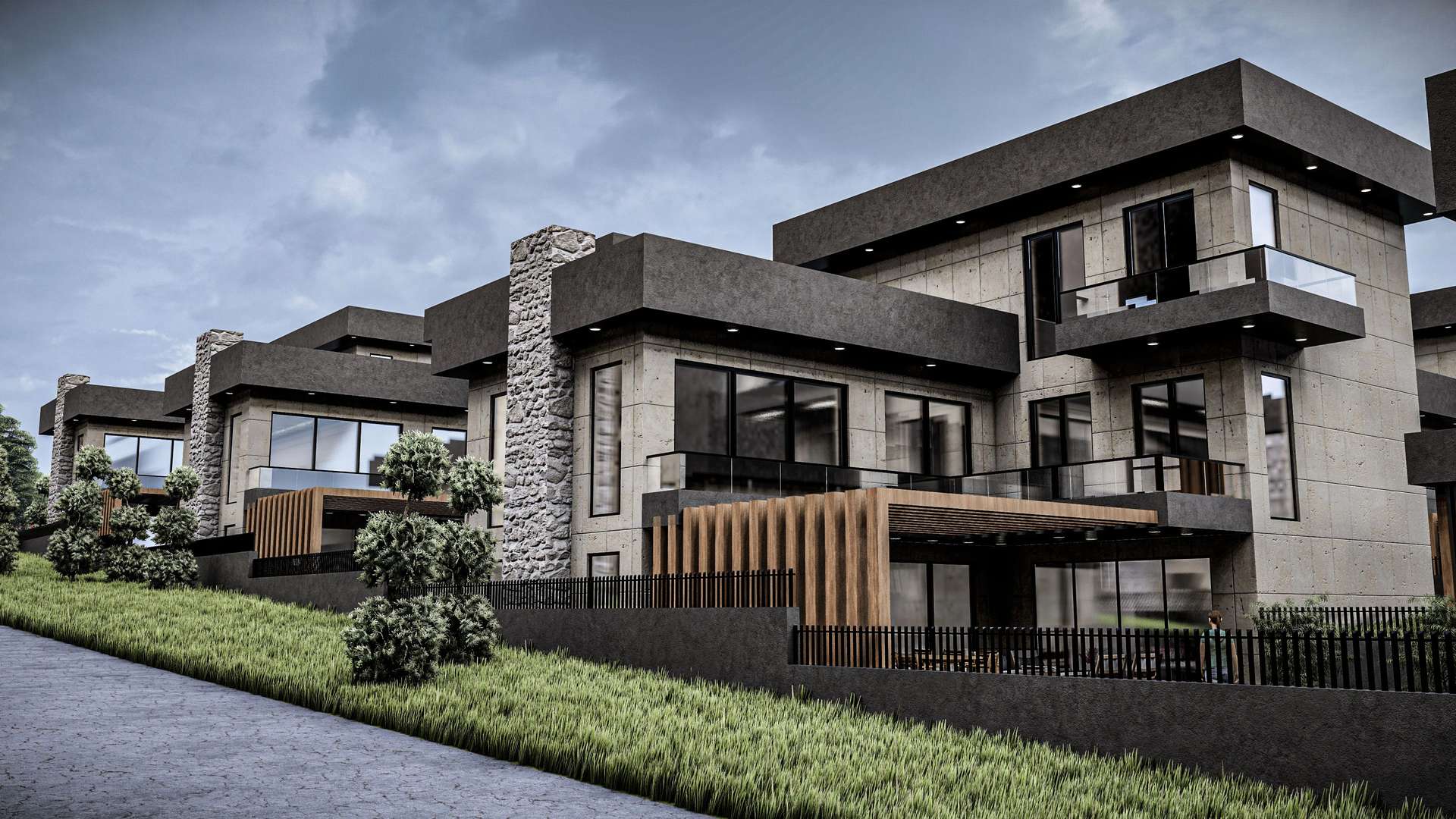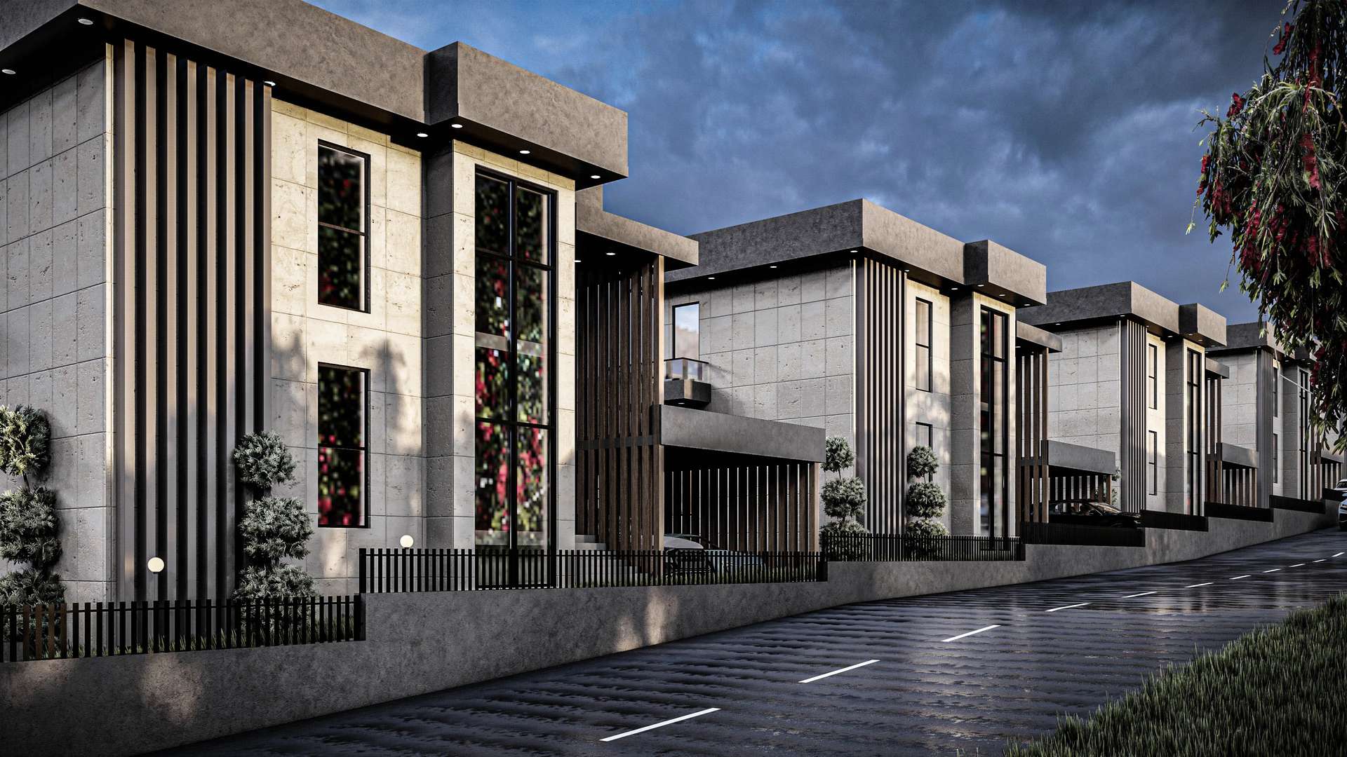 Dodurga Villa Sitesi, müstakil yaşam konforunu geniş ölçekli ve planlı bir yerleşim kurgusuyla bir araya getiriyor. Arazinin doğal yapısıyla uyumlu bir şekilde konumlanan villalar, tekrar eden rasyonel kütle hareketleriyle alan genelinde dinamik, çağdaş ve bütüncül bir mimari dil oluşturmaktadır. Tasarımın ana karakterini; açık gri dokulu cephe yüzeyleri, koyu antrasit belirgin çatı hatları ve yapıya sıcaklık katan dikey ahşap güneş kırıcıların yarattığı estetik denge tanımlar. Her bir villanın kendine ait özel bahçe ve yarı açık otopark alanları kullanıcı mahremiyetini güvence altına alırken; geniş cam yüzeyler ferah, prestijli ve doğayla iç içe bir komşuluk kültürü vadetmektedir.