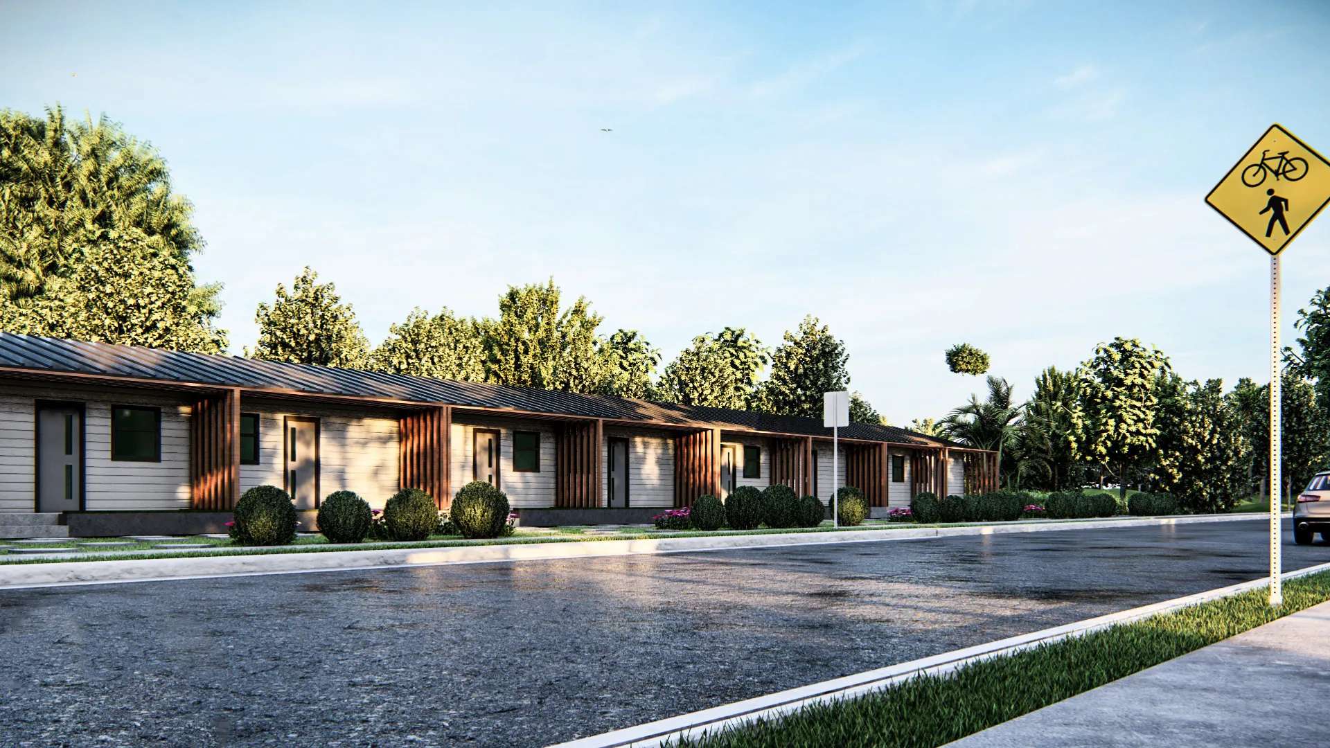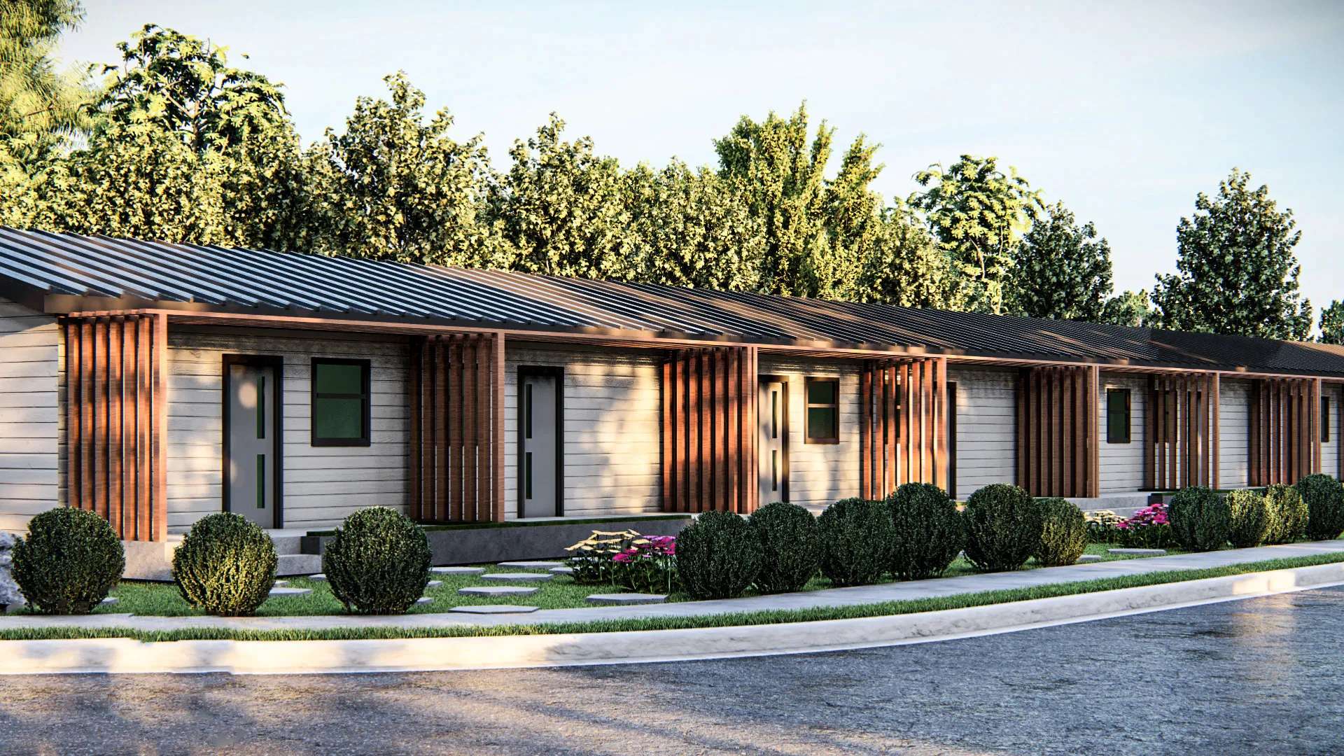 Modern mikro yaşamı dinamik ve yenilikçi bir mimari dille yorumlayan "Tiny House 4", dışa dönük kurgusuyla doğanın içinde sosyal bir yaşam alanı sunuyor. Tasarımın ana karakterini; cepheyi cesurca bölen diyagonal hat ile bu hattın ayırdığı sıcak doğal ahşap kaplamalar ve koyu antrasit yüzeylerin yarattığı güçlü estetik tezat oluşturmaktadır. Geniş ahşap teras, ön cepheye zekice entegre edilen modern dış mekan bar/tezgah detayıyla açık havada keyifli vakit geçirmeye olanak tanıyan fonksiyonel bir sosyalleşme alanına dönüşür. Geniş sürgülü cam yüzeyleri ve akılcı planlamasıyla bu tasarım, kullanıcılarına doğayla iç içe, enerjik ve konforlu bir mikro yaşam vadetmektedir.
