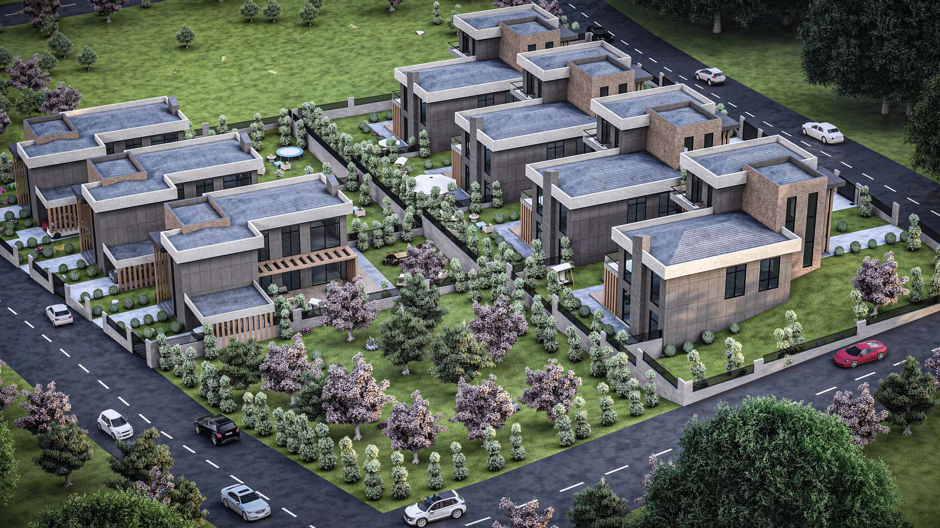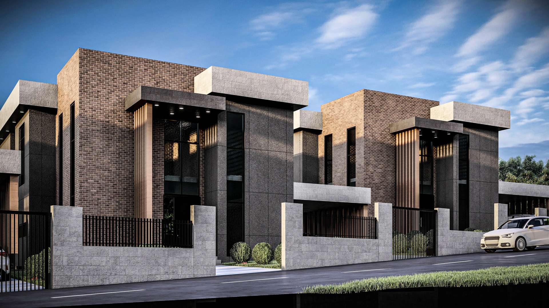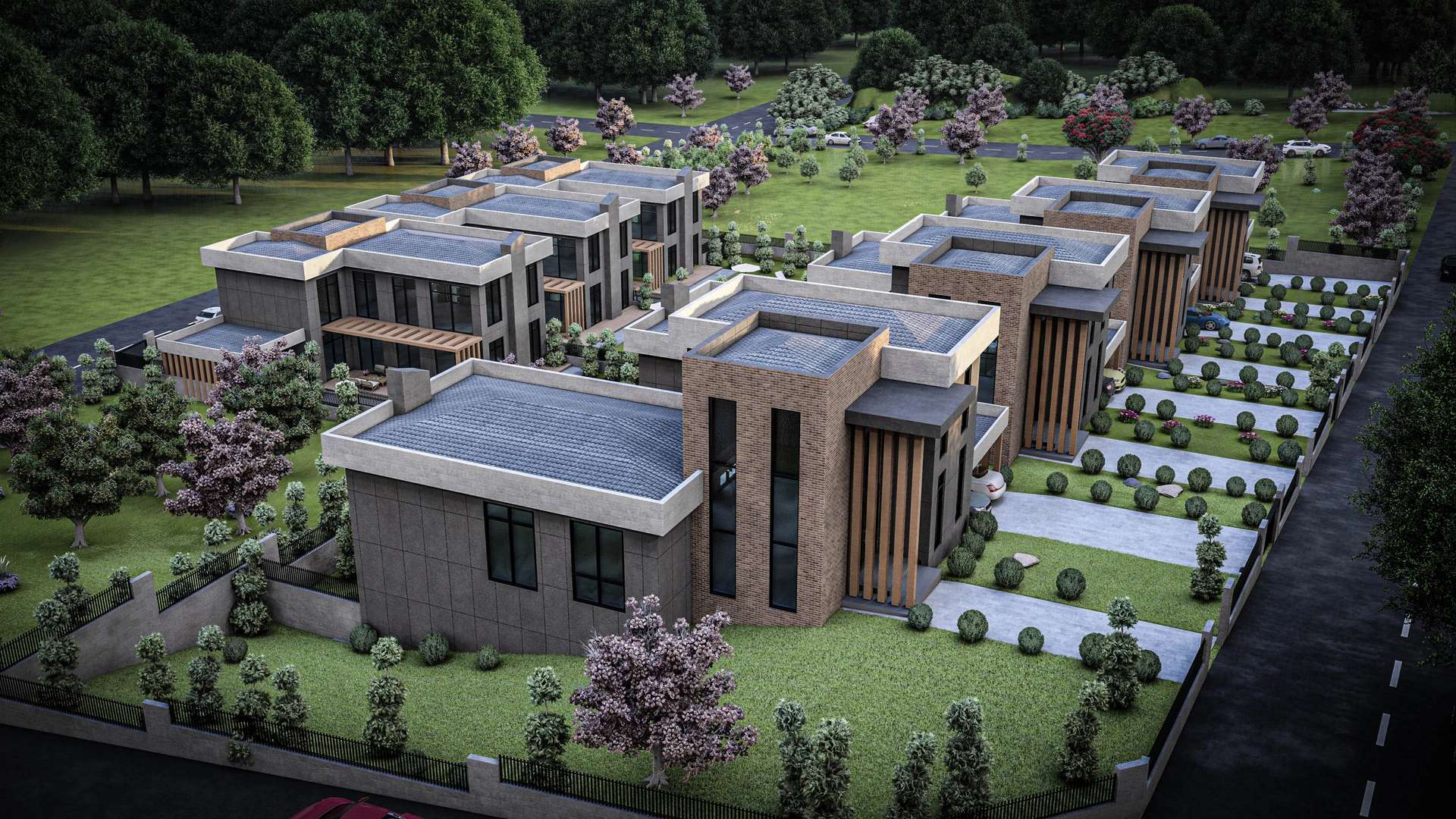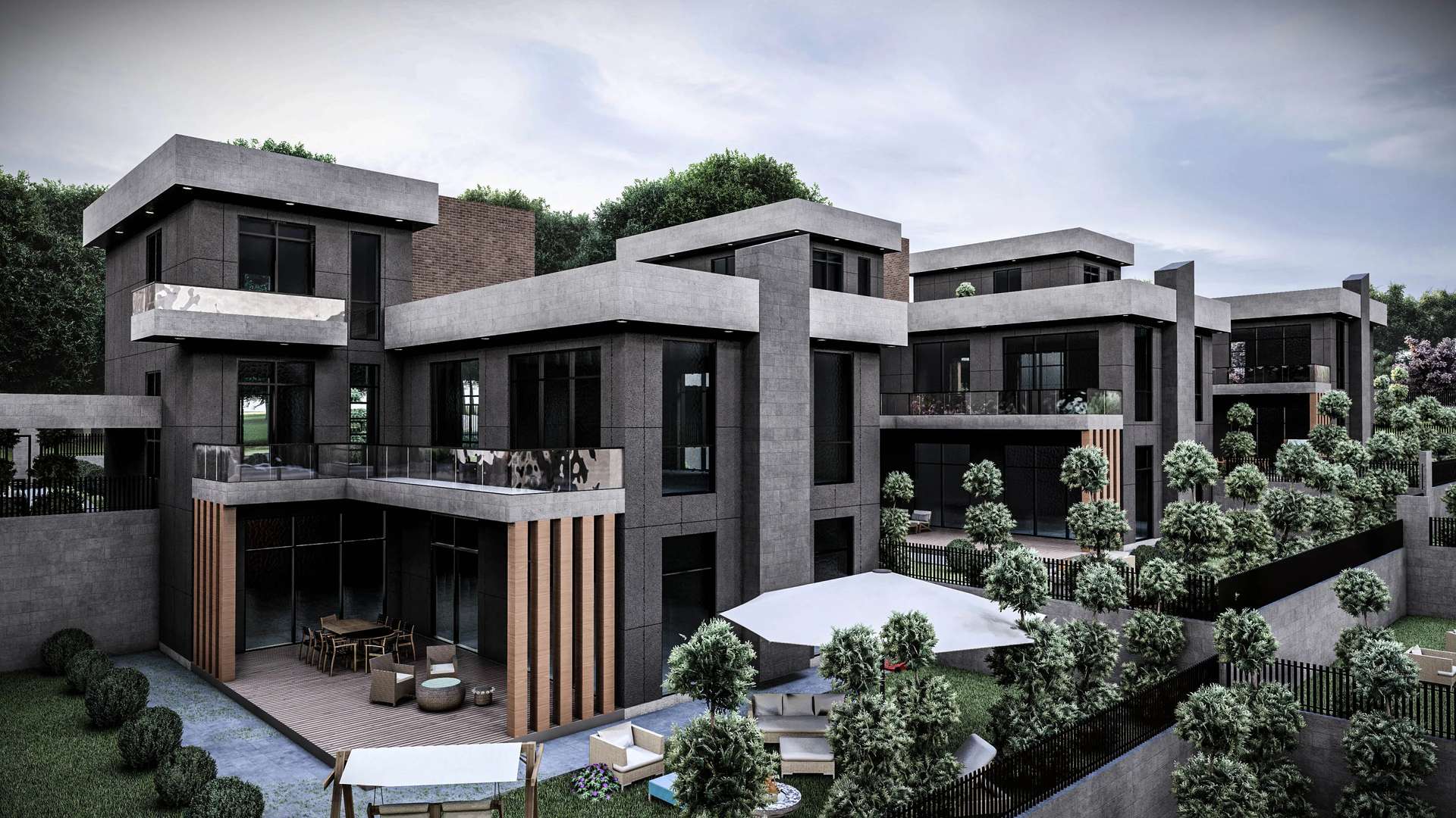 İncek’te konumlanan Venti Villaları 1. Etap projesi, modern kütle kurgusu ve nitelikli malzeme seçimleriyle müstakil yaşama prestijli bir yorum getiriyor. Rasyonel ve kübik formların hakim olduğu tasarımda, cepheleri saran antrasit yüzeyler; sıcak tuğla dokusu ve dikey ahşap güneş kırıcılarla dengelenerek yapıya estetik bir ritim kazandırmaktadır. Geniş cam yüzeyler ve galeri boşluklu yüksek giriş kurgusu, iç mekanların gün ışığıyla maksimum düzeyde bütünleşmesini sağlarken; ana kütleye entegre edilmiş yarı açık otoparklar ve korunaklı özel bahçeler fonksiyonelliği artırır. Modern hatları ve peyzajla iç içe geçen yerleşim planıyla proje, kullanıcılarına konforlu ve izole bir yaşam alanı sunmaktadır.