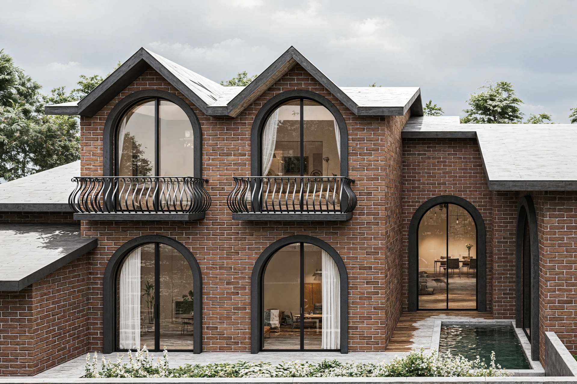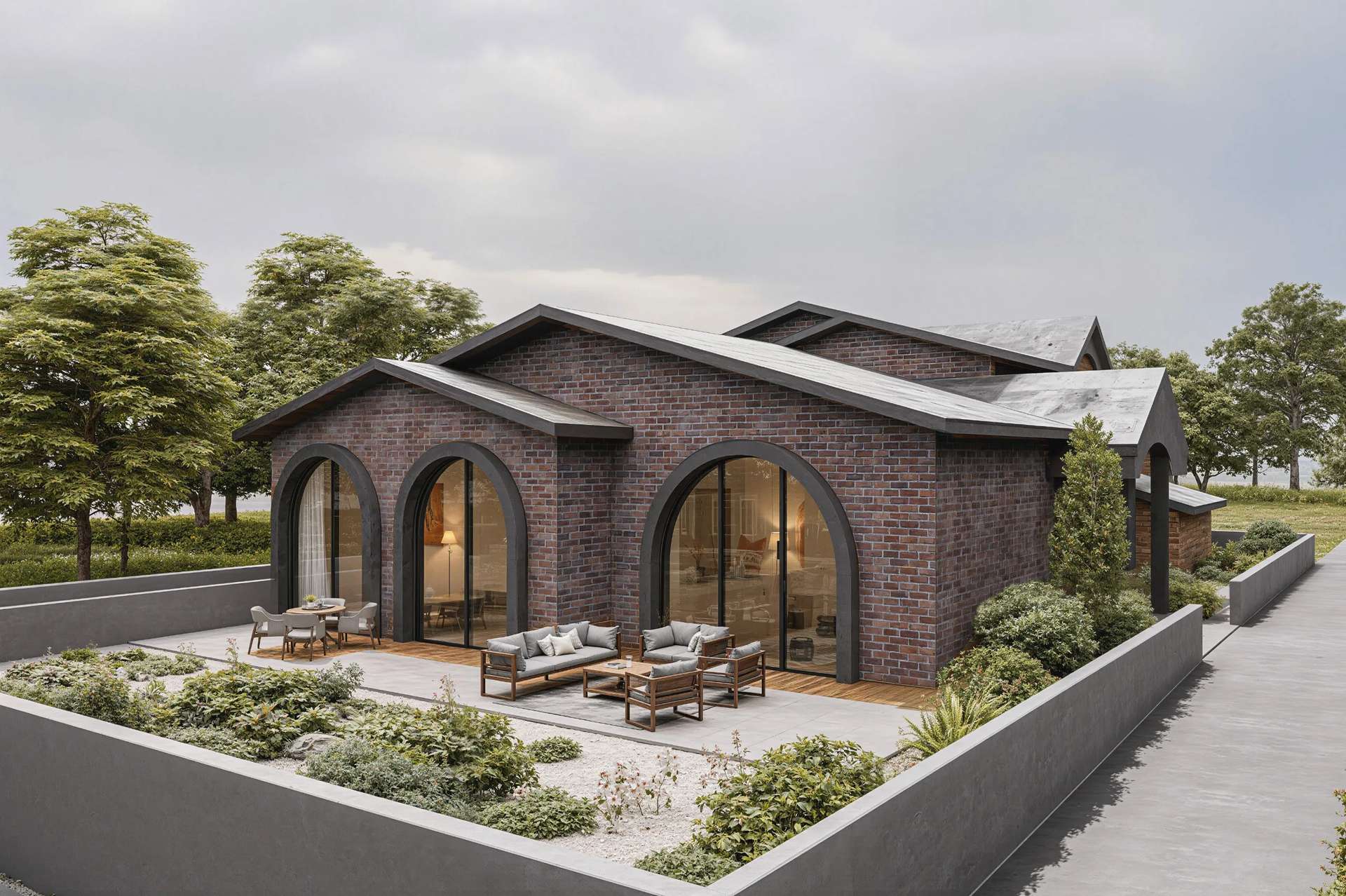 Geleneksel pastoral mimariyi modern ve zarif detaylarla yeniden yorumlayan "Villa 11", sıcak tuğla dokusu ve kemer formlarıyla zamansız bir estetik sunuyor. Tasarımın ana karakterini; tüm cepheyi saran kızıl tuğla yüzeyler ile iç mekana maksimum gün ışığı sağlayan geniş kemerli cam açıklıkların kusursuz uyumu oluşturmaktadır. Koyu renkli kırma çatı kurgusu ve kemerleri çevreleyen antrasit çerçeveler, tuğlanın doğal sıcaklığıyla güçlü bir tezat yaratarak yapıya karakteristik bir duruş kazandırır. Klasik ferforje balkon korkulukları ve doğayla bütünleşen davetkar mimarisiyle bu tasarım, kullanıcılarına prestijli, asil ve huzur dolu bir müstakil yaşam deneyimi vadetmektedir.